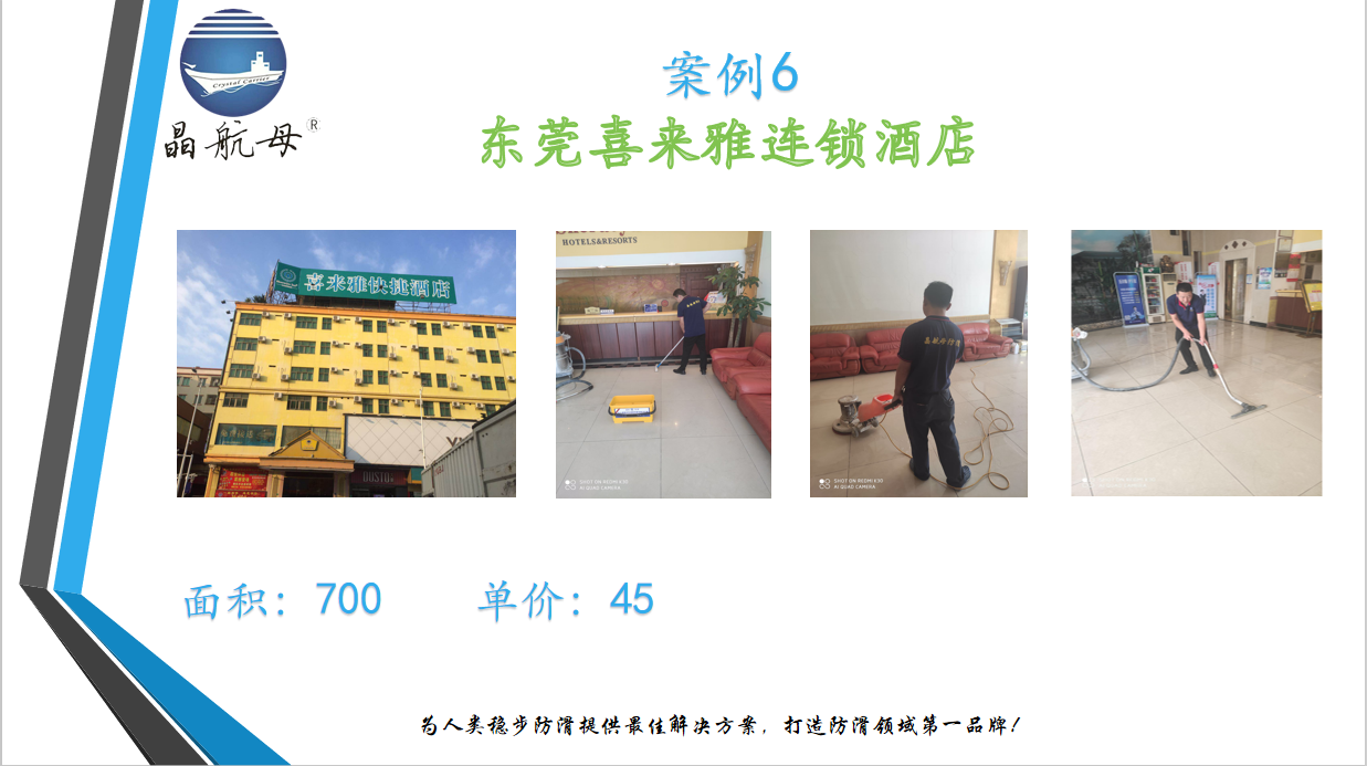 晶航母-東莞喜萊雅連鎖酒店地面防滑處理(經典案例)面積:7...